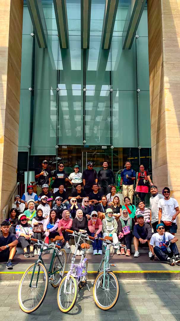 Rute dimulai dari Plaza Festival, melewati kawasan Epicentrum untuk sesi foto bersama, lalu berlanjut ke Taman Suropati. Di taman itu, peserta menikmati rehat singkat sambil menikmati jajanan tahu gejrot, momen spontan yang menambah kehangatan suasana.