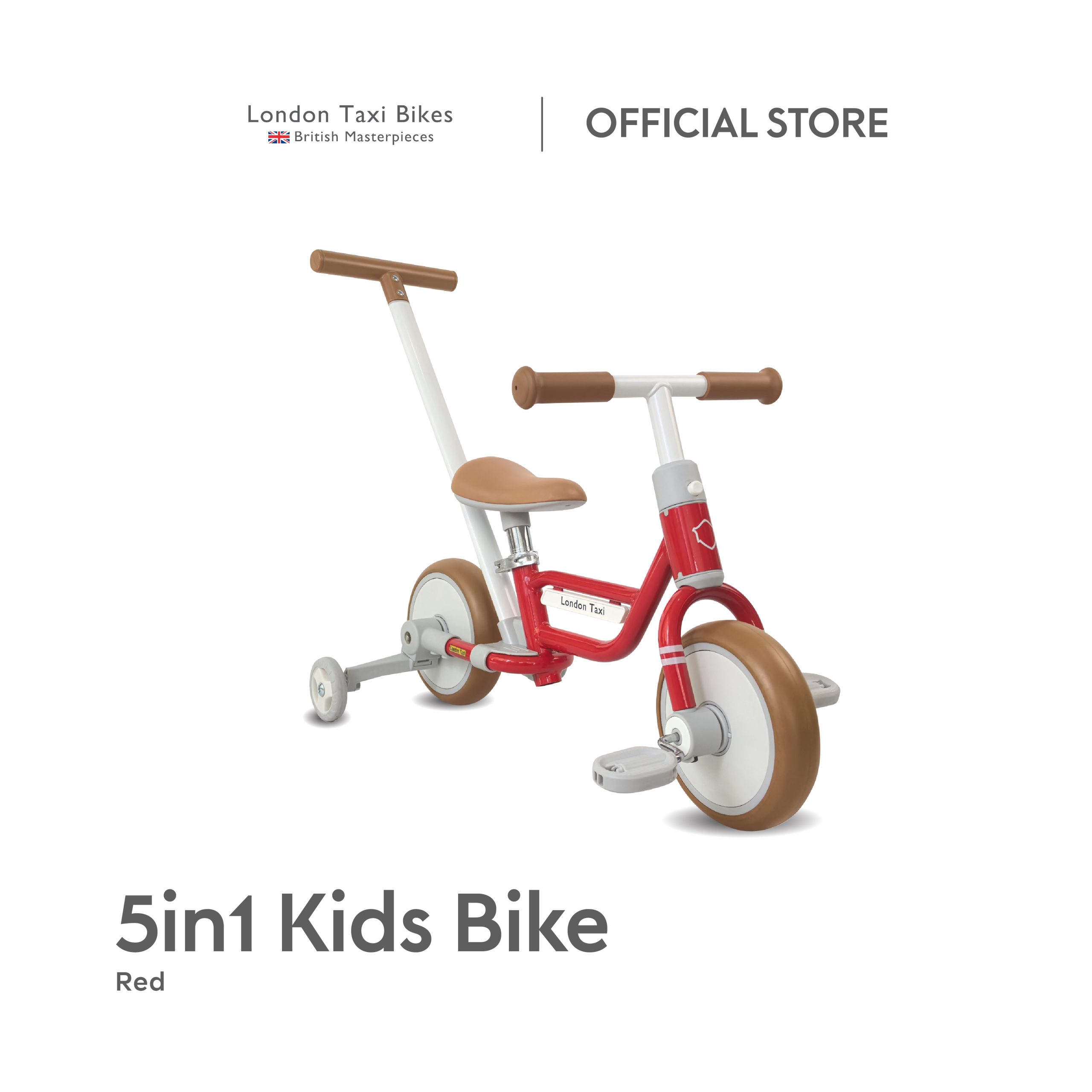 London Taxi 5-in-1 Kids Bike grows with your child! With 5 riding modes designed for heights of 70–95 cm, this lightweight 3.7 kg bike supports every stage from being pushed by parents to developing independent balance.